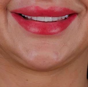 Atsižvelgdami į tai, prieš keramikos laminates rekomendavome dantų tiesinimą kapomis, siekiant vizualiai praplėsti dantų lanką ir atkurti simetriją. Gydymo metu dėmesys buvo sutelktas ne tik į dantų spalvos keitimą, bet į šypsenos architektūros atkūrimą – proporcijas, lanko plotį ir harmoniją. Esant platesniam ir simetriškesniam dantų lankui, šypsena įgauna visiškai kitą efektą: vizualinis plotis pasąmonėje siejamas su genetiniu pranašumu, suteikiančiu kur kas didesnę estetinę vertę nei vien tik baltesni dantys.